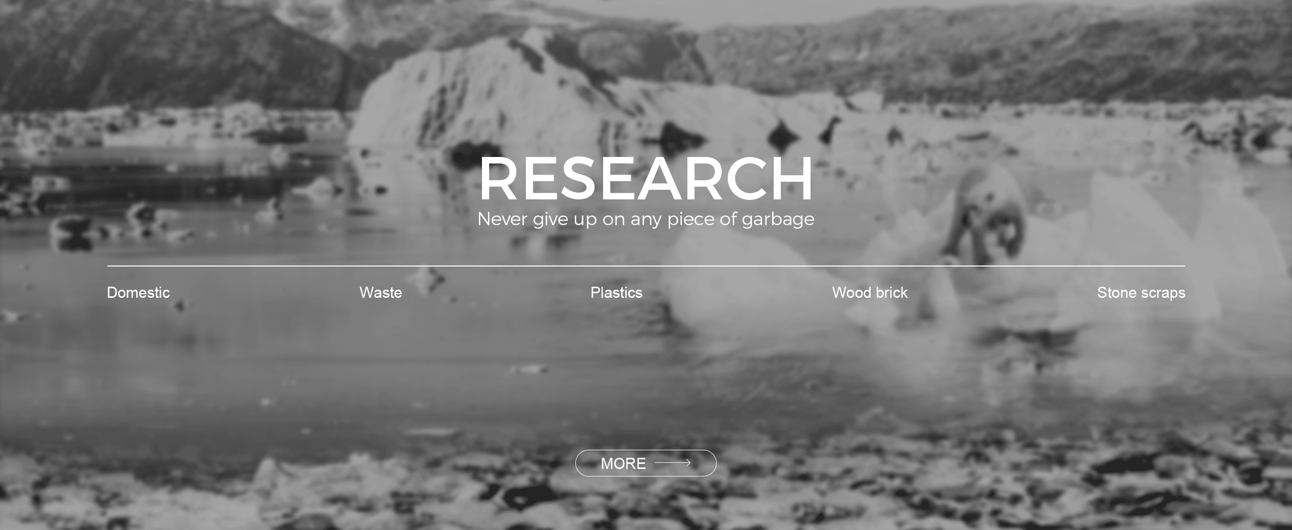 We take on the role af scavengers, rosearching the path of regeneration for useless malerials such as abandoned ssone mines,ceramic debris,constructicn waste,and discardcd plaslics